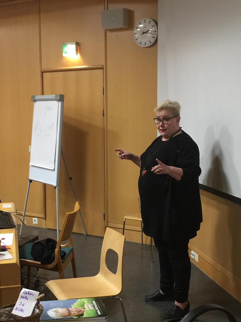 Vapun jälkeen saimme kauan odotetun vieraan, kun Sirpa Pietikäinen tuli jäsentapaamiseemme kertomaan työskentelystä Euroopan parlamentissa ja omista näkemyksistään ikäihmisiä koskevien asioiden parantamiseksi. Tilaisuus oli mielenkiintoinen ja tupa täynnä kuuntelijoita!