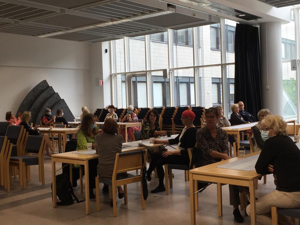 Aloitimme syyskauden iloisella musiikilla 40 jäsenen voimin. Muusikko Klaus Pennanen soitti ja lauloi meille ja sävelet kuljettivat kotimaan kesätunnelmista aina Italiaan ja Espanjaan asti. Lopuksi lauloimme yhdessä Kultaisesta nuoruudesta. Turvaväleistä huolehdittiin kiitettävästi ja käsidesiä oli tarjolla. Olipa hauskaa taas nähdä tuttuja kasvoja!