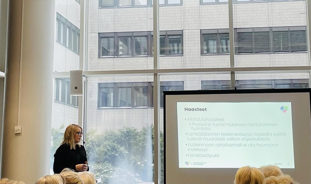 Virtakirkolla oli vuoden osallistujaennätys; 70 jäsentä oli kuuntelemassa Maarit Raja-ahon esitystä Vantaan ja Keravan hyvinvointialueen valmistelutyön vaiheesta. Työtä on ollut paljon ja haasteita riittää vielä vuodenvaihteen jälkeenkin, se tuli selväksi! Saattaapa olla, että vielä useammankin vuodenvaihteen jälkeen