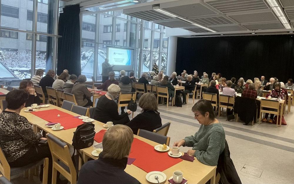 Perinteiseen tapaan joimme Virtakirkolla kakkukahvit tänä vuonna 75, 80, 85, 90 ja 95 vuotta täyttäneiden jäsenten kunniaksi. Heitä on kaiken kaikkiaan 34 henkilöä, joista noin puolet oli saapunut paikalle. Lämminhenkinen tilaisuus jossa musiikista vastasi Jaserin Trio