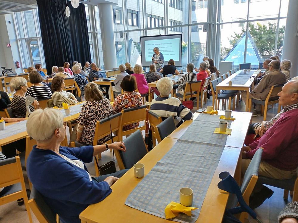 Tänään meillä oli ilo ja kunnia saada vierailevaksi tähdeksi jäsentapaamisemme kaikkien aikojen ensimmäisen Vuoden Senioriksi valitun Tuulikki Petäjäniemen. Kuulimme mielenkiintoisen esityksen aiheesta Seniorit ja osallisuudesta.