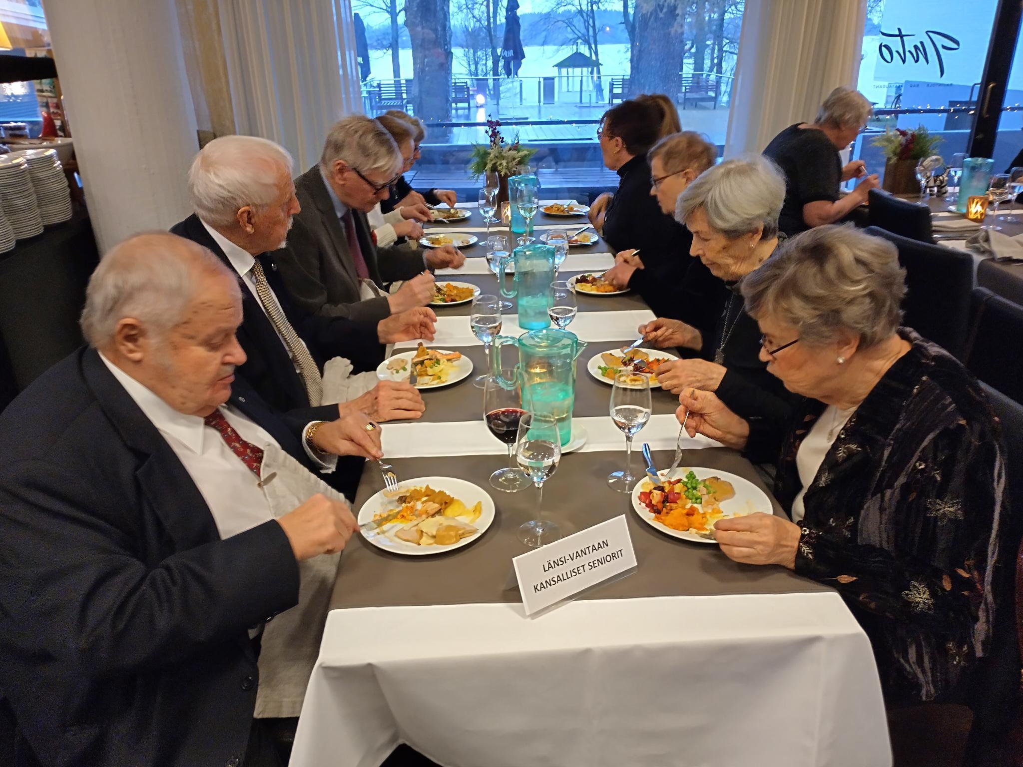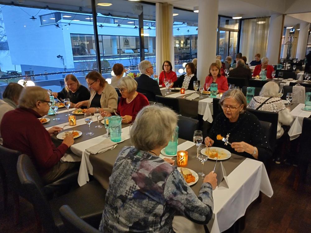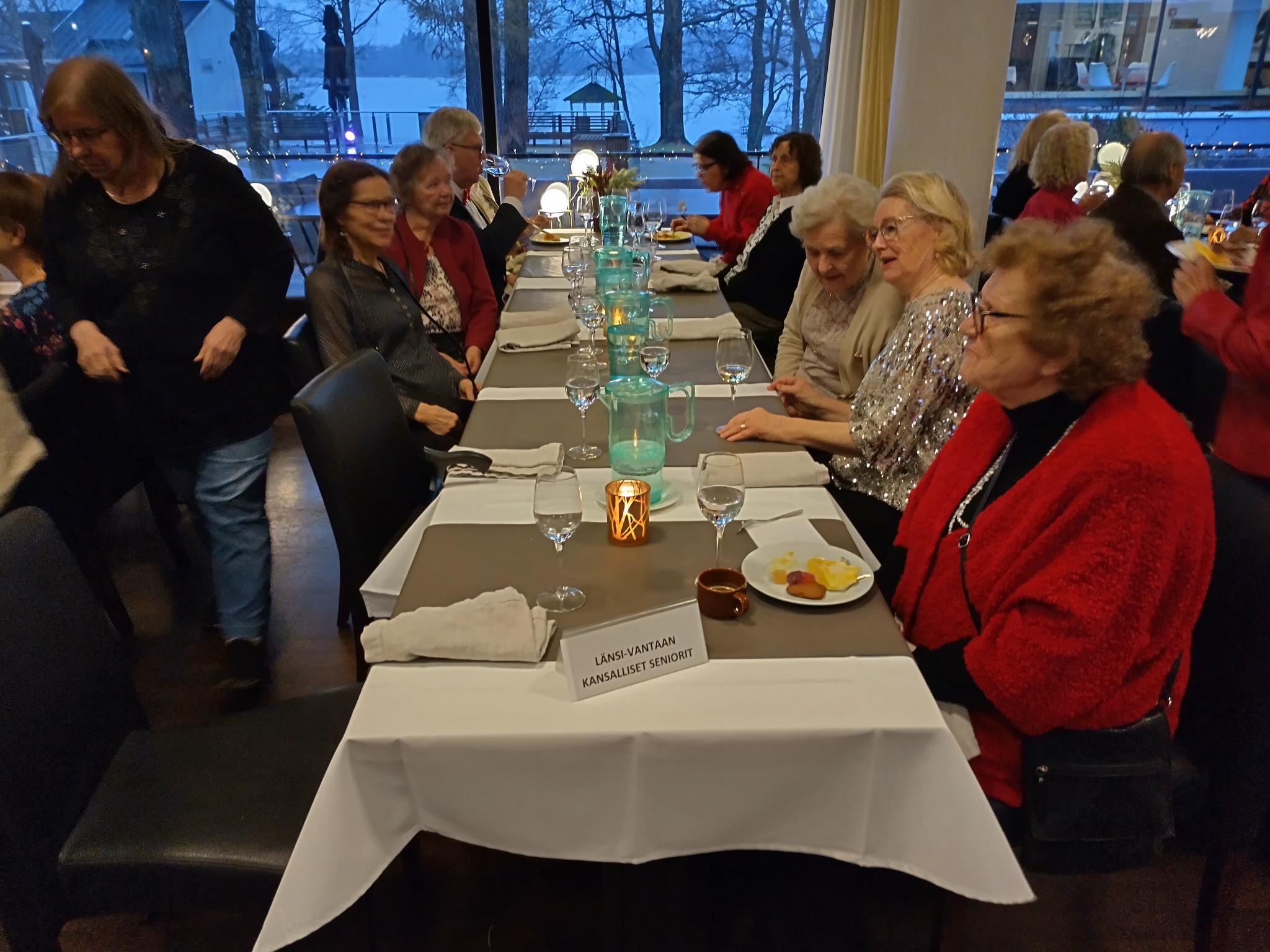 Tänään olikin sitten vuoden viimeinen, vaan ei kuitenkaan vähäisin, yhteinen rientomme. Yhteiselle joululounaallemme Tuusulan Gustavelundiin meitä lähti bussilastillinen iloisia senioreita.