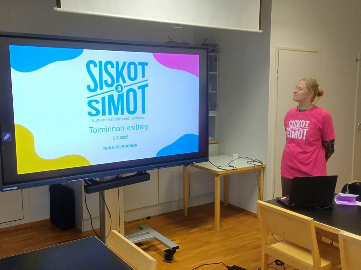 Niina Kilpiäinen kertoi Siskojen ja Simojen vapaaehtoistoiminnasta maanantain tietoiskussa.